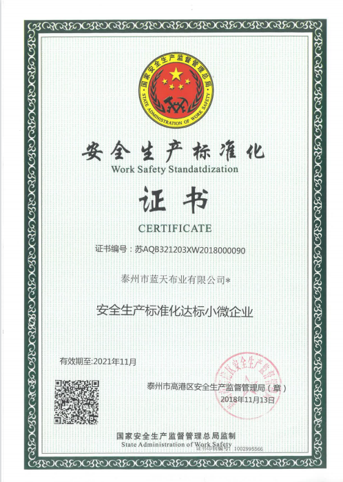 安全生產(chǎn)標(biāo)準(zhǔn)化證書